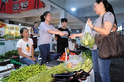 鄰近攤位的關(guān)系也要處好,上午蔬菜旺銷時,不能和臨近的攤位相互殺價。孩子們的大聲吆喝,吸引了不少顧客。他們已經(jīng)像個賣菜的“老把式”,有時為顧客多加個塑料袋,抑或少算個零頭,顧客走時會特別表示感謝。