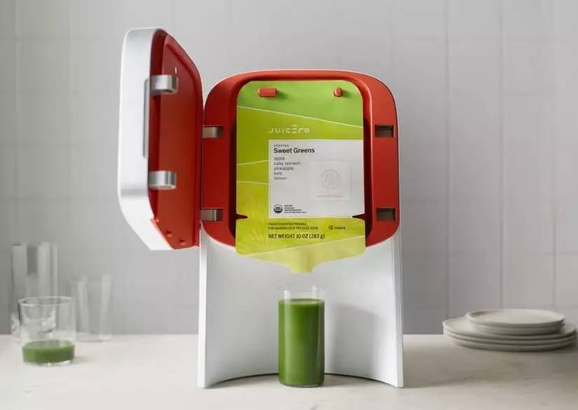 與傳統(tǒng)榨汁機(jī)不同的是,這款與互聯(lián)網(wǎng)連接的智能榨汁機(jī)“太過(guò)金貴”,不能把新鮮蔬果直接放進(jìn)去榨汁。購(gòu)買(mǎi)這款榨汁機(jī)的用戶(hù)必須配套購(gòu)買(mǎi)朱塞羅“果汁材料包”。