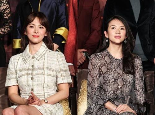 宋仲基曾和章子怡一起拍攝化妝品廣告,章子怡還曾在社交網(wǎng)站發(fā)布宋仲基抱著自己女兒的照片,宋慧喬此前也曾在電影《一代宗師》、《太平輪》中與章子怡有過(guò)合作。