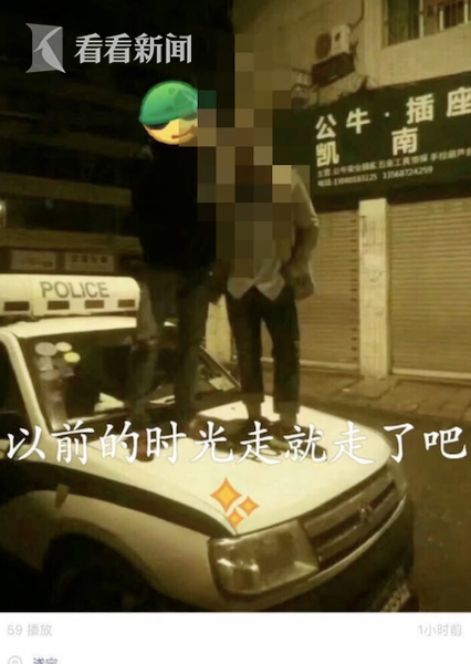 這張照片是兩名男子相互依靠,站在警車(chē)引擎蓋上所拍攝的,這張圖片上還配上了一句“以前的時(shí)光走就走了吧”, 警方了解到,這張照片是在一個(gè)名叫“快手”的社交軟件上進(jìn)行發(fā)布的,而這個(gè)軟件在登記注冊(cè)的時(shí)候需要進(jìn)行實(shí)名認(rèn)證。