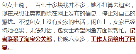 關(guān)于安全鏈的真假,以及為什么同一個(gè)賣家會(huì)有多個(gè)賬號(hào),淘寶方面沒(méi)有回復(fù)。包女士向我們反饋說(shuō),閑魚(yú)方面已經(jīng)聯(lián)系她,說(shuō)是封停了賣家的所有賬號(hào),出售她孩子的信息,已經(jīng)搜不到了。