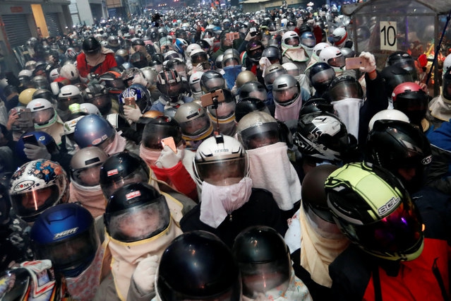 臺灣十萬人戴安全頭盔觀看“鹽水蜂炮”