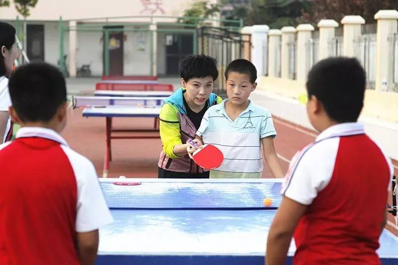 鄧亞萍與小隊(duì)長(zhǎng)切磋球技 關(guān)注體育教育基礎(chǔ)發(fā)展