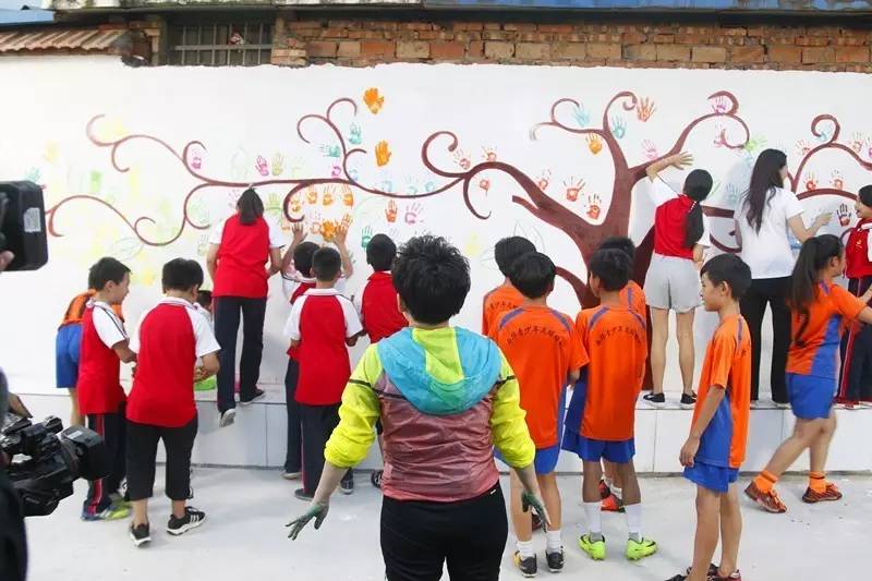 最后鄧亞萍和第一書(shū)記秦倩與老師同學(xué)們一起拿起畫(huà)筆,在希望小學(xué)的墻上畫(huà)出孫莊村的未來(lái)……