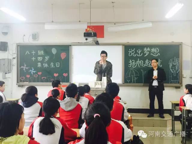 班主任李少鋒老師很激動,他說,沒想到一條小小的微信,竟然真的請到了河南交通廣播主持人來給同學(xué)們送蛋糕,他說,這樣的班會開得很有意義,讓孩子們學(xué)會分享,是與同學(xué)們心貼心的交流。
