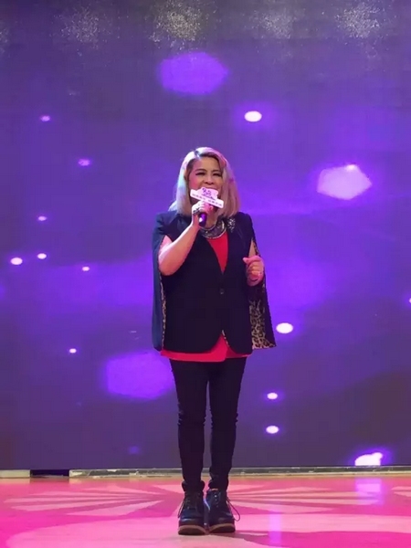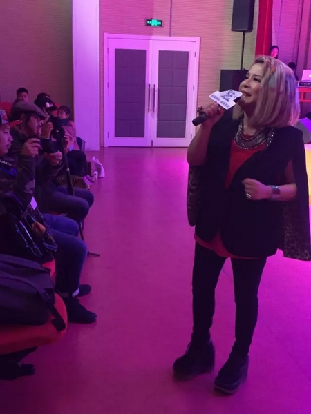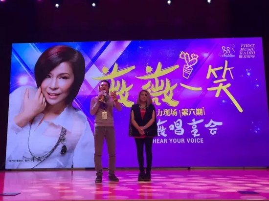 唱享會還未開始傅薇已經(jīng)在現(xiàn)場彩排了