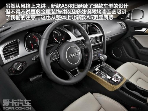 雖然新款奧迪A5的中控臺布局沒有進行新的設(shè)計,但是新車采用了全新設(shè)計的儀表盤,一體化設(shè)計的儀表與內(nèi)飾的融合更加緊密。另外老款平庸的變速箱擋桿被更換,新的擋桿很容易激起我們的駕駛沖動,另外新車在MMI操作面板的很多細節(jié)上也有變化。