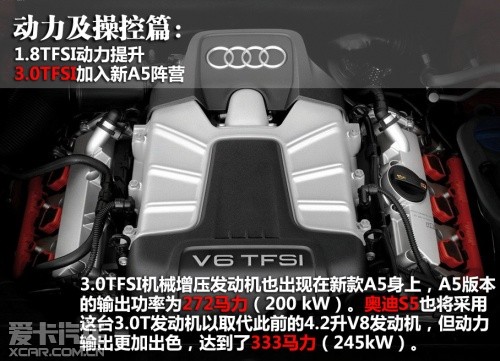 動力及操控篇:1.8TFSI動力提升 3.0TFSI加入新A5陣營 底盤重新調(diào)教