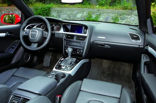 奧迪A5 Cabriolet 2.0T雖然身為一款敞篷跑車,但其內(nèi)飾設(shè)計卻與奧迪轎車的整體風(fēng)格完全一致。在這個座艙里,我們看不到大面積的金屬裝飾,也找不到刺激駕駛者腎上腺素分泌的夸張設(shè)計。黑色依然是座艙的核心色調(diào),各種豪華配置告訴我們——這并不是一款過分追求動態(tài)性能的車,舒適才是它的首要任務(wù)。駕駛臺上,MMI多媒體互動系統(tǒng)依舊是所有座艙系統(tǒng)的核心。與上一代系統(tǒng)相比,新一代MMI多媒體交互系統(tǒng)的改進(jìn)包括3個方面:第1,硬盤驅(qū)動的導(dǎo)航系統(tǒng)功能更加強大;第2,屏幕顯示和圖像處理能力均有提升;第3,操作按鍵的設(shè)計更加人性化,便于用戶靈活自如地使用各項功能。