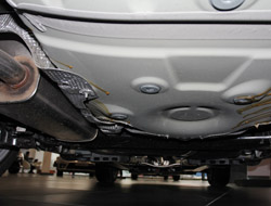 后懸掛:扭力梁式半獨立懸架:扭力梁式懸掛的扭梁中間橫梁和兩側的懸掛是焊死在一起的。扭力梁式半獨立懸架是通過一個平衡桿來使車輪產(chǎn)生傾斜,保持車輛的平穩(wěn)。其工作原理是將非獨立懸掛的車輪裝在一根整體車軸的兩端,這樣當一邊車輪運轉跳動時,就會影響另一側車輪也作出相應的跳動,使整個車身振動或傾斜。優(yōu)點:構造簡單、承載力大、缺點:平穩(wěn)性與舒適性欠缺。
