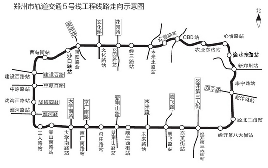 鄭州地鐵5號(hào)線是鄭州地鐵線網(wǎng)中唯一一條環(huán)形線路,與其他地鐵線路全部有換乘站。