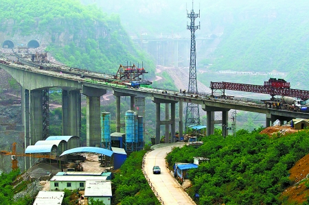 4月24日,林(州)長(治)高速公路林州太行大峽谷段正在緊張施工。該段工程全長2.91公里,施工線路中有3座大橋、3條隧道,地質條件復雜,施工難度大。承擔施工任務的中鐵大橋局的建設者們克服種種困難,現(xiàn)已基本完成主體工程建設,確保了今年11月份通車。
