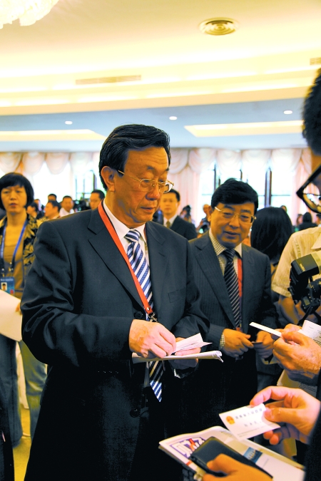 論壇開始前,郭庚茂一走進(jìn)會(huì)場(chǎng),就被眼尖的代表們認(rèn)出,不斷有人主動(dòng)去交換名片。論壇剛一結(jié)束,臺(tái)上嘉賓和臺(tái)下聽眾“呼啦”一下都擁到郭庚茂身邊,有的要名片,有的要合影,有的要預(yù)約采訪。郭庚茂微笑著一一滿足大家的要求。