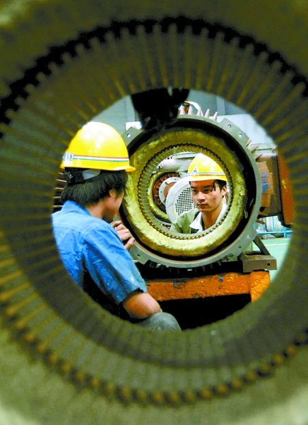 “轉(zhuǎn)方式、正風氣、提效能”活動讓南陽的經(jīng)濟發(fā)展環(huán)境日益優(yōu)化,使許多大項目、大企業(yè)駛?cè)氚l(fā)展的快車道。圖為南陽防爆集團股份有限公司技術(shù)人員正在生產(chǎn)訂單出口防爆電機。