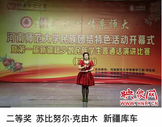 映象網(wǎng)訊 11月27日,由河南師范大學(xué)黨委學(xué)工部、學(xué)生處主辦、外國(guó)語(yǔ)學(xué)院承辦的河南師范大學(xué)民族團(tuán)結(jié)特色活動(dòng)暨第一屆新疆籍少數(shù)民族學(xué)生普通話演講比賽在帕瓦羅蒂音樂廳舉行。