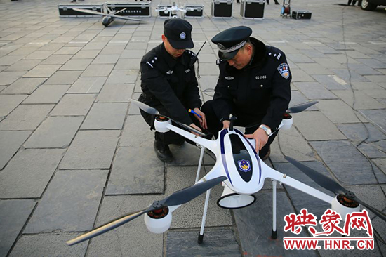 映象網(wǎng)訊(記者 王文凱 通訊員 牛智瑞 薛勇)1月20日下午,隨著首架警用無人機(jī)在滎陽(yáng)市人民廣場(chǎng)升空試用,滎陽(yáng)市治安管理正式步入“無人機(jī)時(shí)代”。這臺(tái)主要用于反恐處突、森林防火、應(yīng)急防空、交通巡查、應(yīng)急指揮、通信保障的警用無人機(jī),將在春節(jié)期間進(jìn)行空中巡邏,專盯違規(guī)在市區(qū)燃放煙花爆竹者。
