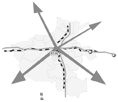 “米”字形快速鐵路網(wǎng),是國務(wù)院批復(fù)《中原經(jīng)濟(jì)區(qū)規(guī)劃》和《鄭州航空港經(jīng)濟(jì)綜合實驗區(qū)發(fā)展規(guī)劃》明確的重大工程,具體就是在京廣和徐蘭“十”字形快速客運(yùn)通道基礎(chǔ)上,建設(shè)鄭州至萬州、鄭州至濟(jì)南、鄭州至合肥、鄭州至太原的高速鐵路。根據(jù)鄭州都市區(qū)整體規(guī)劃,未來將形成以鄭州為中心的“米”字形高鐵輻射網(wǎng)絡(luò),實現(xiàn)北京、西安、武漢等30多個城市的“3小時經(jīng)濟(jì)圈”。