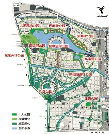 龍湖區(qū)域作為東區(qū)建設(shè)的主戰(zhàn)場,記者昨日看到此次建成的10個公園有七個落戶其中,分別為東運河公園、西運河公園、如意中央公園、北湖濕地公園、東商業(yè)公園、西商業(yè)公園、龍湖外環(huán)公園。