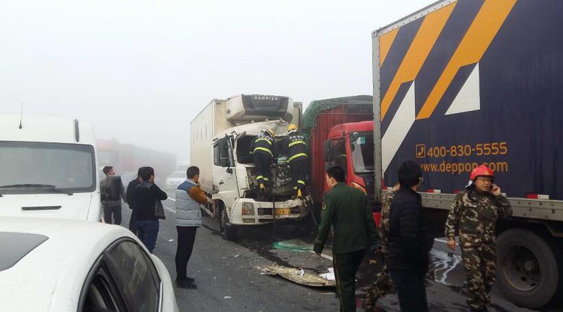 11月14日早八點(diǎn)多,微信網(wǎng)友吳先生給大河君爆料,受大霧影響,連霍高速中牟到開(kāi)封段西往東方向,發(fā)生多起車(chē)禍。其中,一起車(chē)禍引發(fā)九車(chē)連撞,消防官兵正在現(xiàn)場(chǎng)救援。