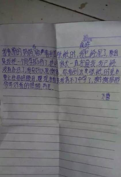 (湖南綏寧小學生跳樓身亡,遺書稱遭同學家長逼迫,一張疑似絕筆信的照片在網(wǎng)上流傳,內(nèi)容為一名學生向媽媽臨終告別,后面還附有多張醫(yī)院搶救照,遺書的作者是湖南綏寧縣長鋪二小5年級的一名學生,目前已經(jīng)跳樓身亡。)
