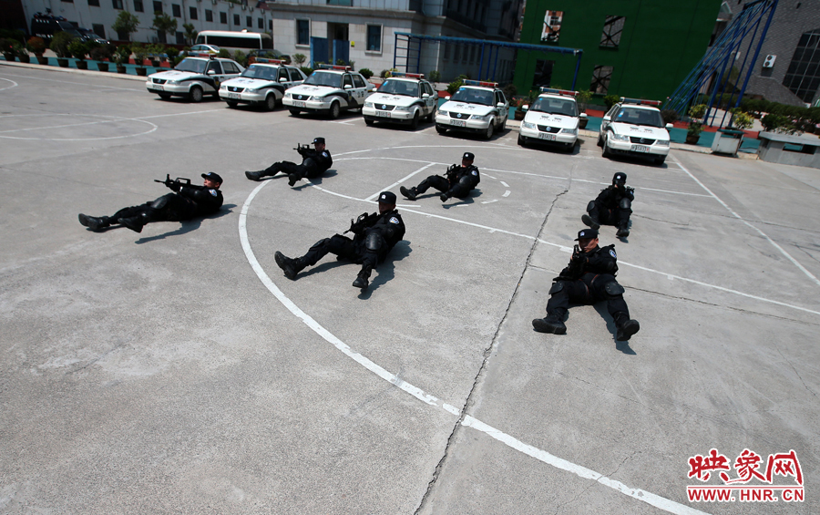 不論刮風下雨還是酷暑,特警每天都要正步伐矯健的巡邏