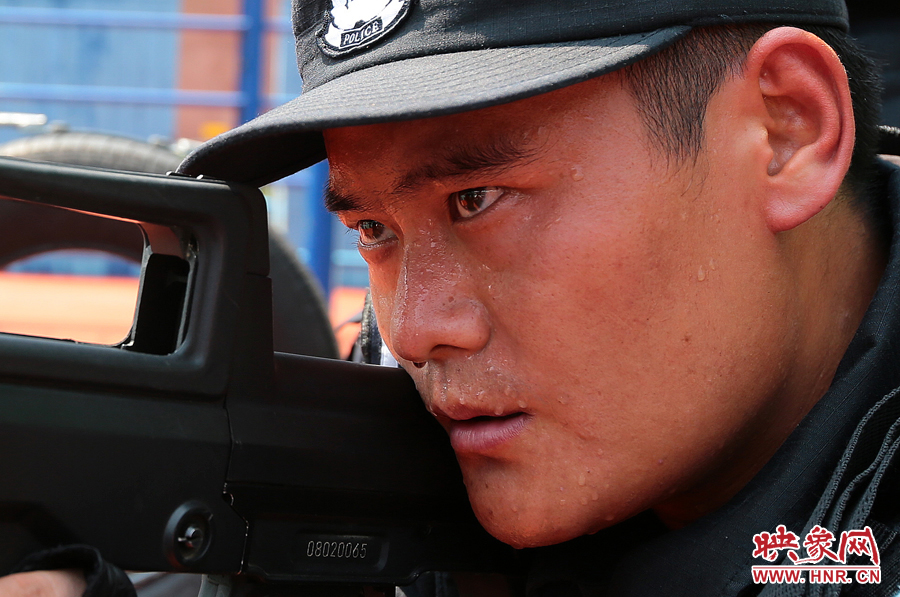 特警在訓練時,必須穿上這樣一身密不透風的衣服,一把槍的重量就有七八斤