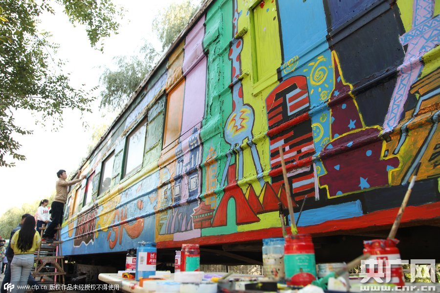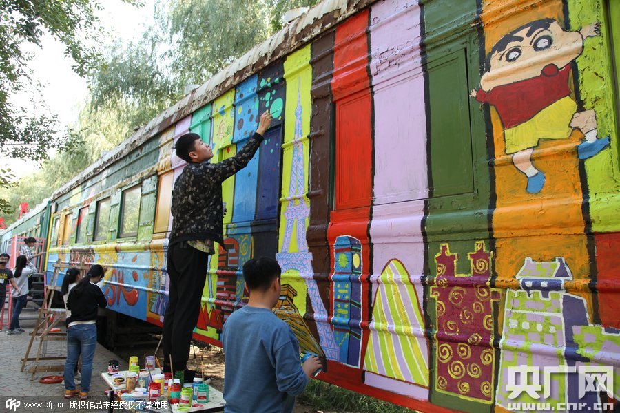 2015年10月10日,鄭州四禾美術中學充分發(fā)揮美術生的優(yōu)勢,對火車車身1進行涂鴉改造,使火車宿舍看起來更加漂亮。