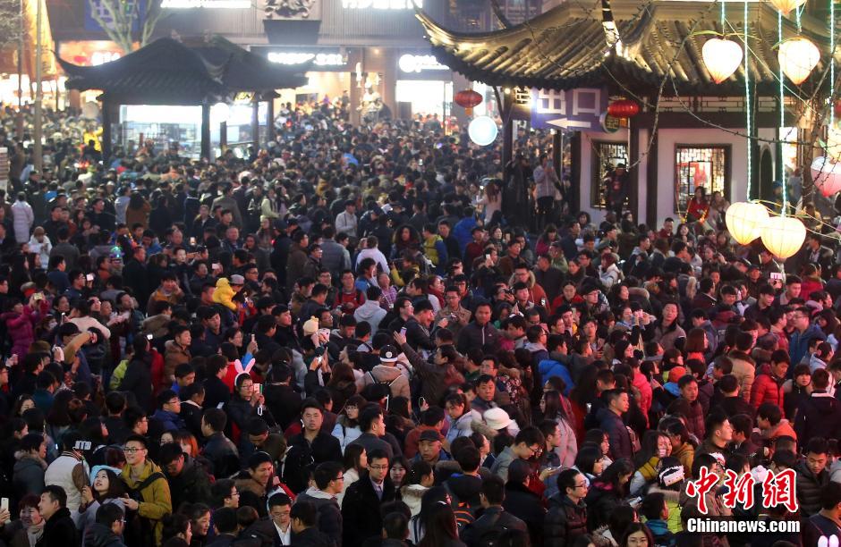 2月22日晚,南京夫子廟廣場上人山人海。當(dāng)日是元宵節(jié),數(shù)十萬市民和游客涌進南京夫子廟景區(qū)內(nèi)欣賞秦淮燈會,瞬間開啟“人從眾”模式。秦淮燈會又稱“金陵燈會”,是流傳于南京地區(qū)的特色民俗文化活動,主要在每年的春節(jié)至元宵節(jié)期間舉行。 中新社記者 泱波 攝