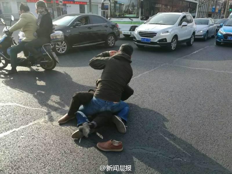 晨報(bào)訊 你一個(gè)過肩摔,我一個(gè)橫掃腿,接著扭打在一起,互相纏斗難分伯仲……這幕刺激的武打動(dòng)作場景,昨天早高峰時(shí)在上海安波路營口路上演,而沖突竟源于“路怒”!目擊者肖先生告訴記者,昨天上午8點(diǎn)不到,他經(jīng)過安波路、營口路路口時(shí),看看兩名男子扭打在一起,場面十分激烈。“我順勢拿出手機(jī)拍了幾張照片,旁邊也有行人上去勸架。”肖先生說,在兩名男子的身旁,一橫一豎停著兩輛轎車,“我想可能是兩個(gè)人開車有點(diǎn)摩擦引起的‘路怒’吧?!?/font>