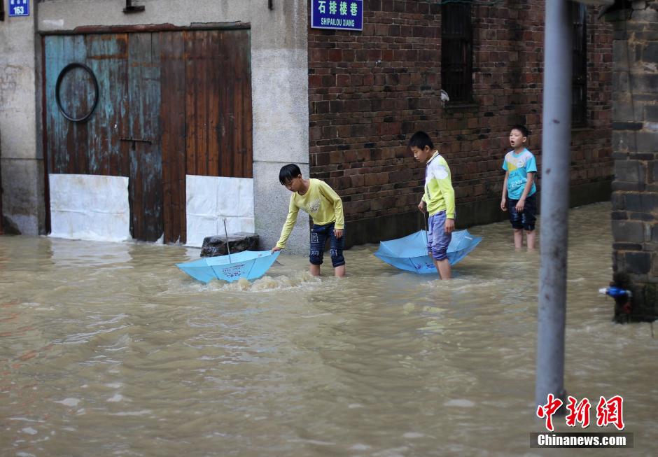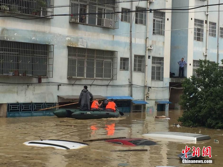 5月5日,地處湘南的永州市道縣遭遇暴風(fēng)雨襲擊,縣城內(nèi)多處低洼路段被水淹沒。當?shù)胤姥床块T正嚴密監(jiān)控雨情、水情,確保安全度汛。 中新社發(fā) 何紅福 攝