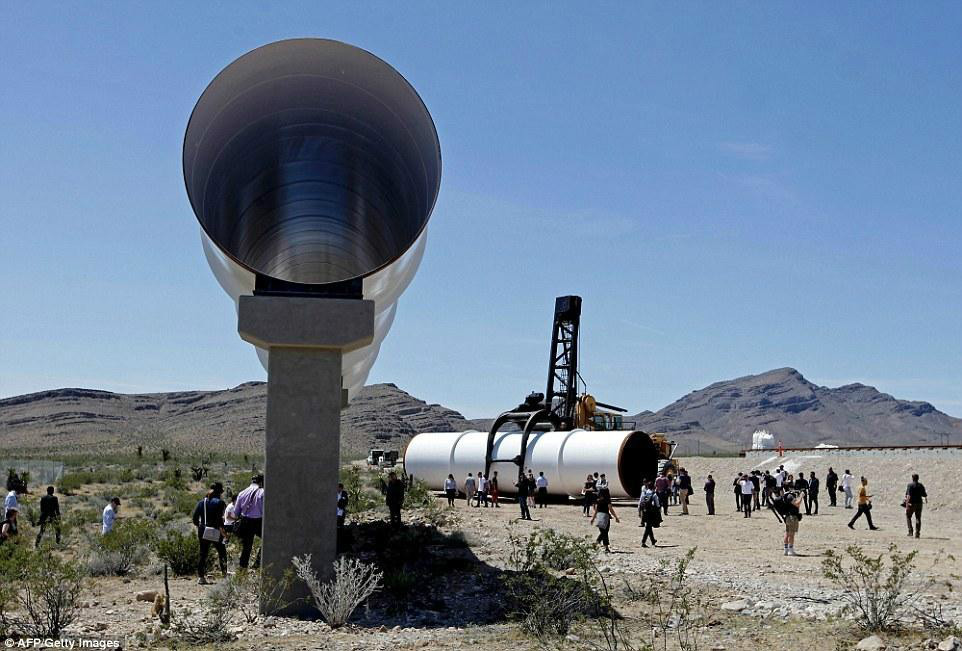 圖為Hyperloop One公司超級(jí)高鐵模型遠(yuǎn)景,他們正在與另一家公司競爭,爭取首先開發(fā)出改變?nèi)藗兩畹某咚倭熊嚒?/p>