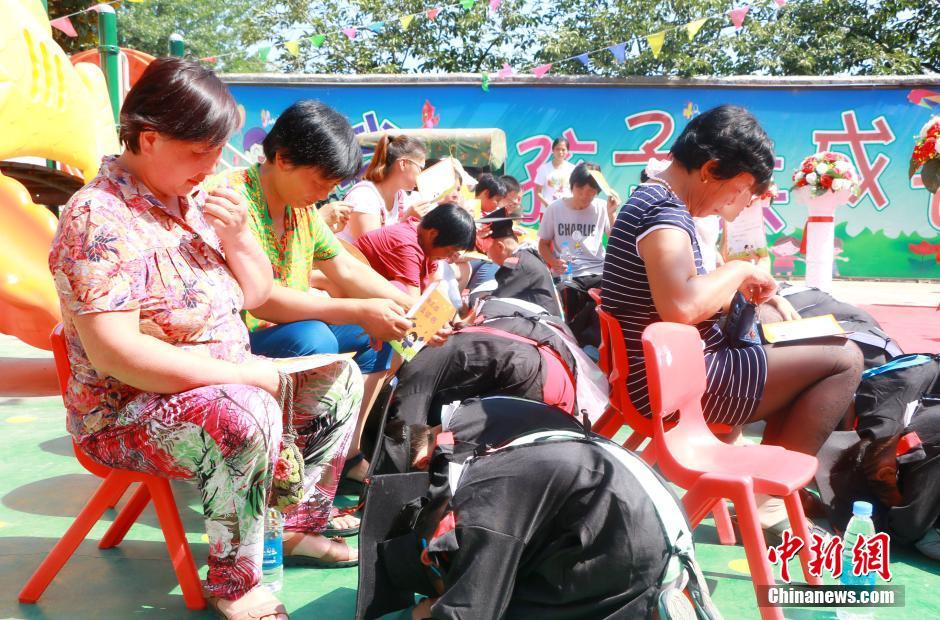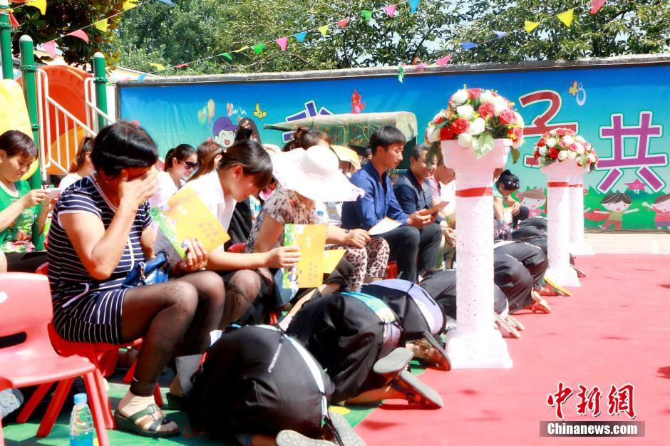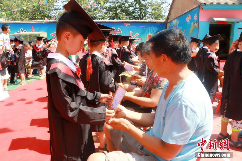 又到一年畢業(yè)季,6月20日,河南商水縣鄧城鎮(zhèn)留守兒童幼兒園60名孩子迎來(lái)了一場(chǎng)特殊的畢業(yè)典禮。孩子們身穿迷你學(xué)士服,自信地走紅毯、拋學(xué)士帽。在跪謝父母養(yǎng)育之恩的環(huán)節(jié),因?yàn)榇蟛糠趾⒆邮橇羰貎和?,孩子們只能跪謝爺爺奶奶的照顧,許多家長(zhǎng)在現(xiàn)場(chǎng)感動(dòng)落淚。葉青 攝