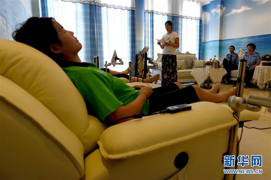 6月26日是國(guó)際禁毒日,今年的主題是“無(wú)毒青春健康生活”。在禁毒日前夕,記者走進(jìn)了河南省唯一的女子強(qiáng)制隔離戒毒所及唯一的未成年人強(qiáng)制隔離戒毒所。近年來(lái),戒毒所注重對(duì)戒毒人員的溫情關(guān)懷救助,搭建戒毒治療綜合性平臺(tái),努力為戒毒人員打造“溫馨之家”,設(shè)置了瑜伽室、健身室、心理咨詢室等場(chǎng)所,通過(guò)開展各種體育鍛煉、心理咨詢、職業(yè)技能培訓(xùn)以及社會(huì)適應(yīng)性教育等活動(dòng),幫助戒毒人員強(qiáng)化體能、修復(fù)身心損害,使他們可以盡快走出困境,融入社會(huì)。新華社記者 李安 攝