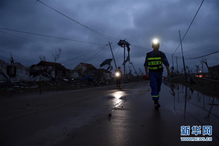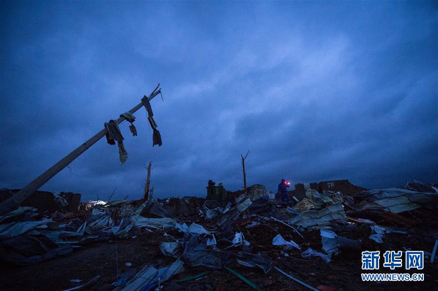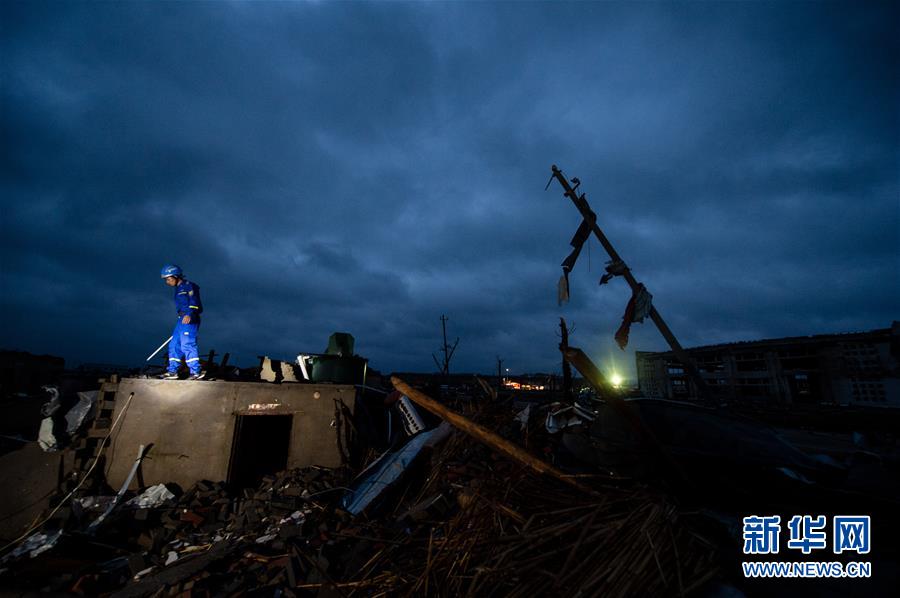 黎明時分,搜救人員繼續(xù)在江蘇省鹽城市阜寧縣受災地區(qū)對廠房、民居等展開全面排查搜尋,營救受災群眾。23日下午,江蘇省鹽城市阜寧縣、射陽縣部分地區(qū)突發(fā)龍卷風冰雹嚴重災害,多個鄉(xiāng)鎮(zhèn)受災,造成大量民房、廠房、學校教室倒塌,部分道路交通受阻。據(jù)初步統(tǒng)計,已造成78人死亡,約500人受傷。