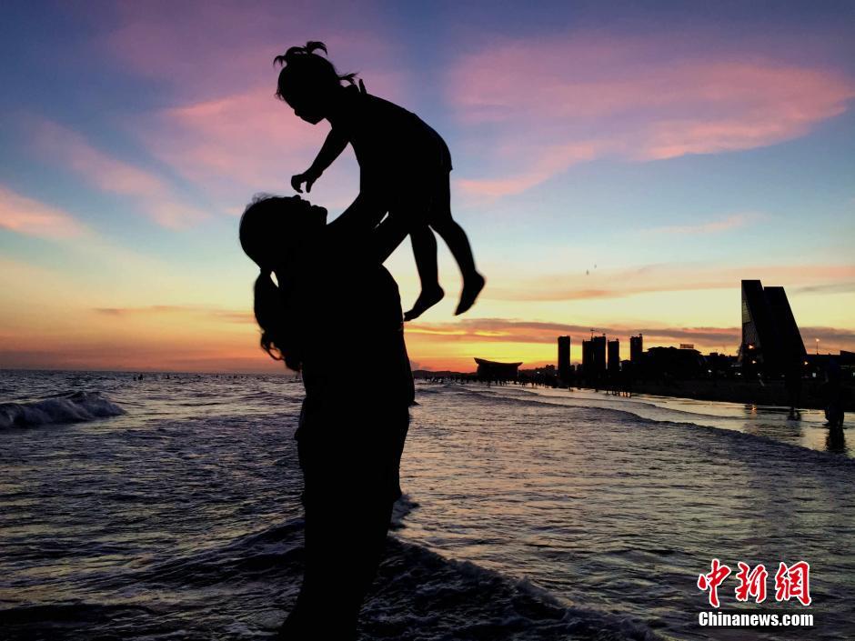 6月27日,廣西北海僑港海灘現(xiàn)晚霞奇觀。受副熱帶高壓影響,廣西連日持續(xù)高溫天氣,而高溫“燒”出的晚霞美景美不勝收,不少市民和游客趁傍晚時(shí)間趕海消暑,一并欣賞迷人晚霞。據(jù)廣西氣象臺(tái)預(yù)計(jì),未來幾天高溫持續(xù),28日將進(jìn)入本次高溫的最強(qiáng)階段。中新社記者 翟李強(qiáng) 攝