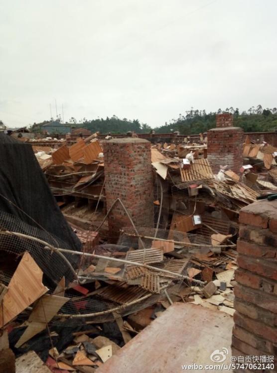 7月12日凌晨5時(shí)許,陣性大風(fēng)突襲四川自貢榮縣古文鎮(zhèn),風(fēng)災(zāi)使古文鎮(zhèn)山邊村鄉(xiāng)巴佬養(yǎng)殖基地6000平米兔舍垮塌,事發(fā)時(shí),該兔舍共有26000只兔子。記者在現(xiàn)場(chǎng)看到,兔舍頂棚已經(jīng)被完全吹跨,木制橫梁和隔板隨處散落,部分兔舍仍有大量兔子被埋,10余名工人正在清理現(xiàn)場(chǎng)和搶救活兔。據(jù)兔舍負(fù)責(zé)人介紹,經(jīng)過(guò)近30多小時(shí)生產(chǎn)自救已搶救出5000余只活兔,初步估計(jì)有10000余只兔子死亡,直接損失超過(guò)300萬(wàn)元。(記者 曹實(shí)秋)圖片來(lái)源:華西都市報(bào)自貢城市頻道官方微博