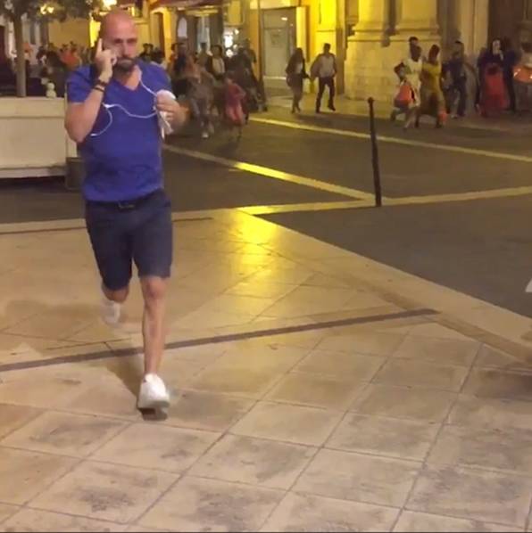尼斯市市長埃斯特羅斯說,“一個(gè)大貨車司機(jī)似乎殺死了數(shù)十人?!?他呼吁當(dāng)?shù)鼐用窳粼诩抑?,不要外出?還有報(bào)道說,警察同大貨車?yán)锏娜讼嗷ド鋼?。但是這一消息沒有得到確認(rèn)。 社交媒體上發(fā)表的視頻顯示,事發(fā)后人們?cè)诮稚象@惶地奔跑。 當(dāng)?shù)貓?bào)紙的一名記者說,他在現(xiàn)場(chǎng)看到很多血跡,很多人受傷。