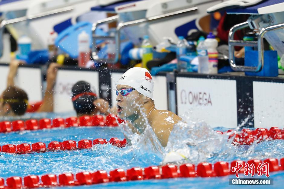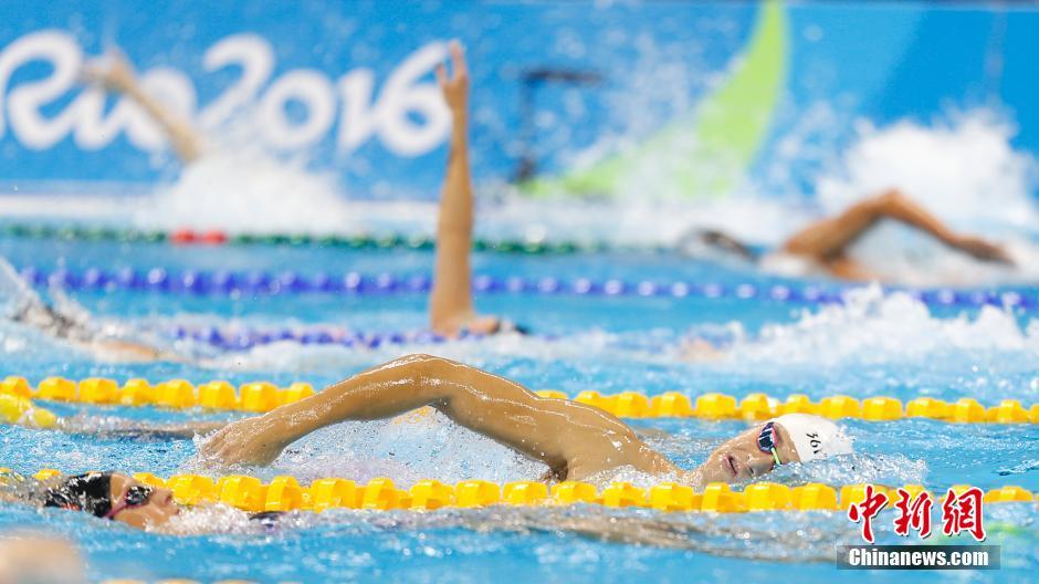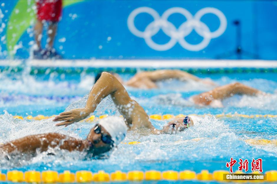 當(dāng)?shù)貢r間8月4日,里約奧林匹克水上項目體育館,中國游泳選手孫楊在泳池內(nèi)進(jìn)行賽前訓(xùn)練。中新網(wǎng)記者 盛佳鵬 攝