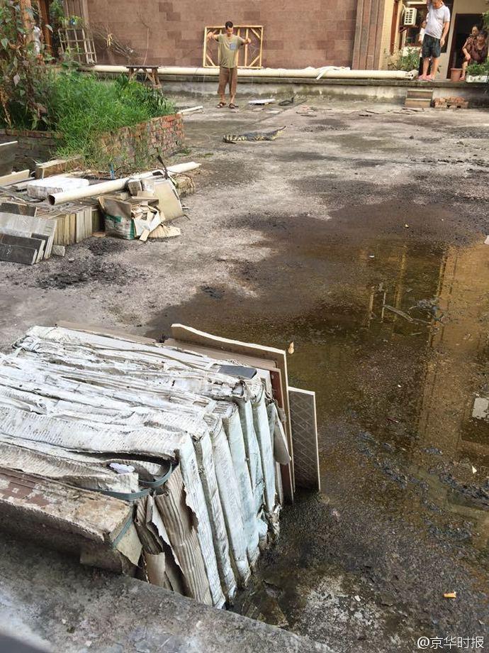 21日,四川省自貢市范女士告訴記者,昨晚樓上鄰居家的鱷魚(yú)“跳樓”了,掉進(jìn)她家一樓的小花園里。