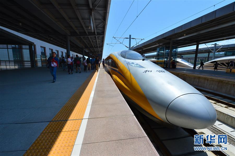 一列高速綜合檢測列車??繉氹u南站(5月16日攝)。