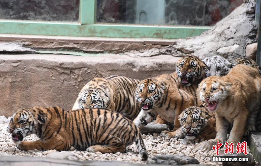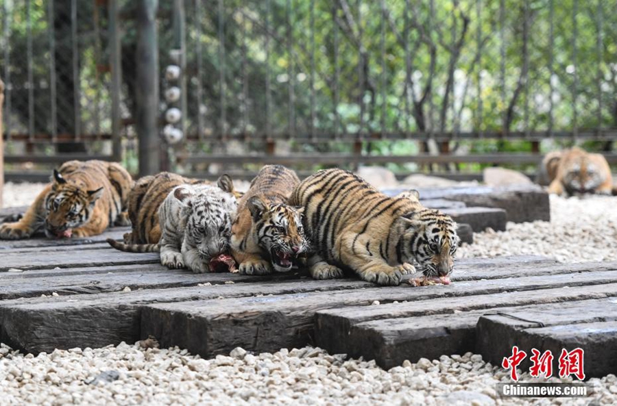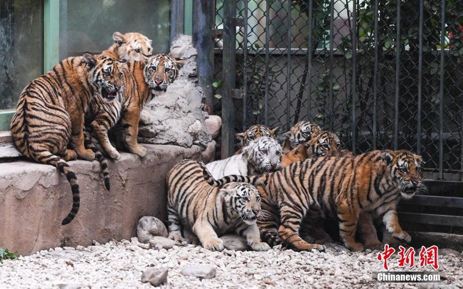 10月17日,濟南野生動物世界2017年誕生的12只小老虎集中亮相,霸氣模樣吸引許多游客駐足觀賞。據(jù)悉,濟南野生動物園2017年共繁育成活26只小老虎,其中2只是“虎中極品”金虎。 中新社記者 張勇 攝