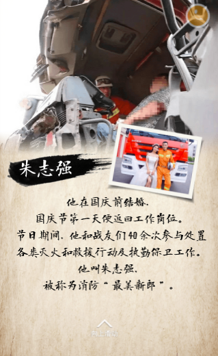他在國慶前結(jié)婚,國慶節(jié)第一天便返回工作崗位。節(jié)日期間,他和戰(zhàn)友們40余次參與處置各類滅火和救援行動及執(zhí)勤保衛(wèi)工作。他叫朱志強(qiáng),被稱為消防“最美新郎”。