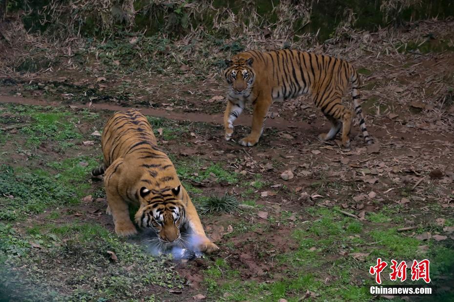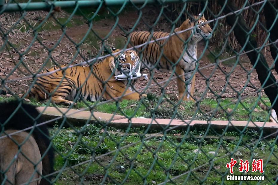 12月2日,有航拍愛好者在重慶樂和樂都野生動物世界虎區(qū)用無人機(jī)拍攝老虎(經(jīng)景區(qū)許可后在安全監(jiān)護(hù)下拍攝),不料在飛到距離地面約三米高度時,一頭老虎迅速跳躍起來,一掌將無人機(jī)擊落。王成杰 攝