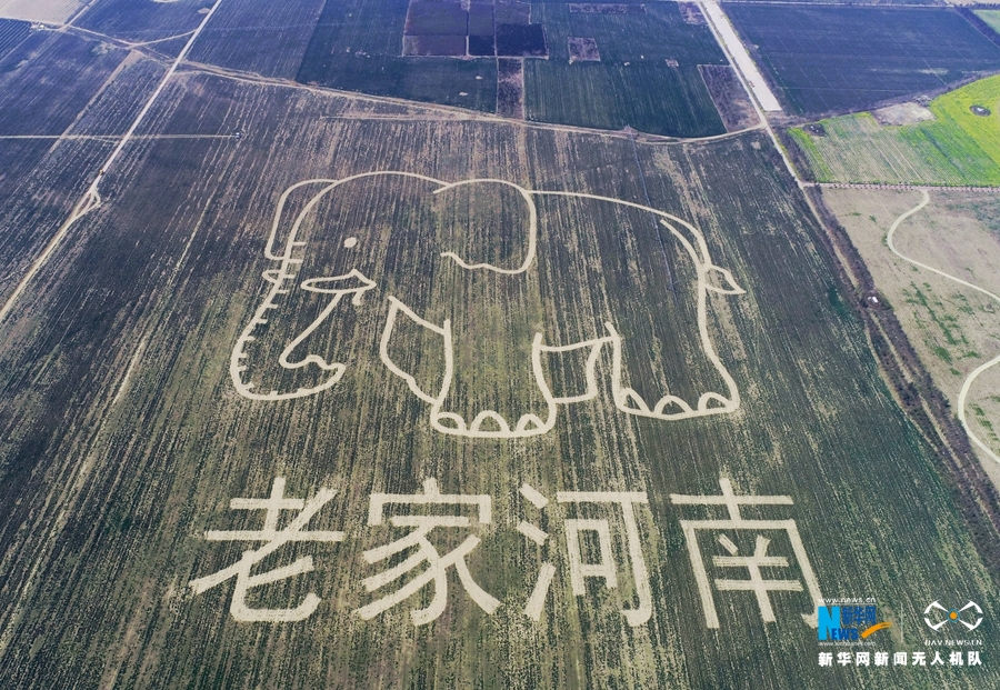 近日,《老家河南》創(chuàng)意圖案亮相河南省溫縣境內的黃河濕地。據介紹,這幅圖案占地一公頃,主要通過圖案設計、定點測繪、錯季間作、田間管理等環(huán)節(jié)制作而成,《老家河南》由大象圖案和“老家河南”字樣組成。新華網發(fā) 徐宏星攝