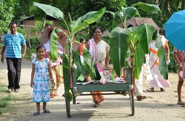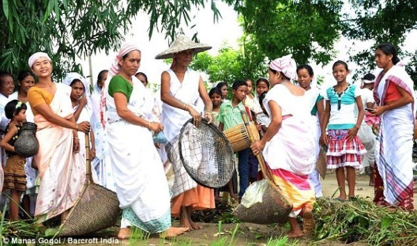 在婚禮上,主持婚禮的圣徒吟誦傳統(tǒng)的祈禱詞,婚禮結(jié)束后,青蛙會(huì)被帶到附近的小池塘放生。村民則繼續(xù)用餐,有超過(guò)900盤食物被供應(yīng)。參加儀式的村民Gogoi說(shuō):“我們放生青蛙,這樣它們可以過(guò)它們自己的生活,同時(shí)向雨神傳達(dá)我們的信息。舉行這樣的儀式是不得已的措施,我們感謝上帝能夠讓我們的愿望成真?!?/p>