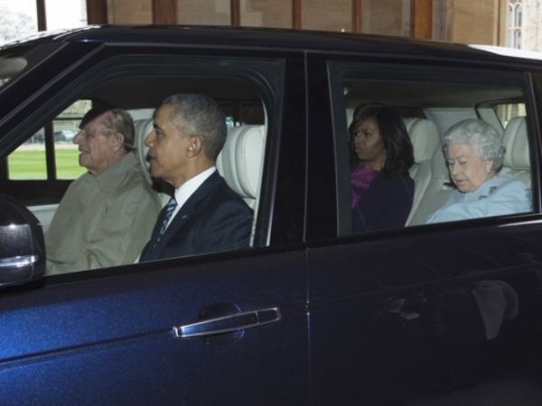 美國總統(tǒng)奧巴馬與妻子米歇爾22日到訪英國溫莎城堡,英國女王伊麗莎白二世與丈夫菲利普親王乘車迎接。只是,這次的司機是94歲的菲利普親王。奧巴馬坐上路虎汽車的副駕駛座,伊麗莎白二世和米歇爾坐在后排座位。奧巴馬晚些時候告訴記者:“我還從來沒有坐過親王開的車。我得說,車開得很平穩(wěn)。”