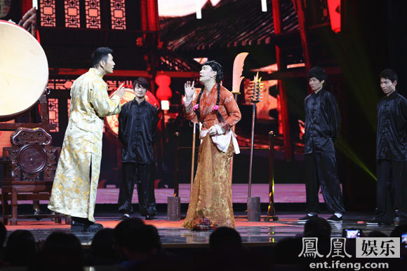 日前,《歡樂喜劇人》第二季發(fā)布預(yù)告片,網(wǎng)友驚喜發(fā)現(xiàn)其中居然有“教主”黃曉明的身影。據(jù)悉,黃曉明將作為助演嘉賓與遼寧民間藝術(shù)團(tuán)上演古裝喜劇《喜從天降》。其中,小沈陽(yáng)梳著兩個(gè)大麻花辮,紅唇艷抹,“笑”果十足。而黃曉明則是一身金黃色長(zhǎng)袍,帥氣有型。兩人在舞臺(tái)上配合默契,尤其是黃曉明卸下“偶像包袱”搞笑揮手,積極與觀眾互動(dòng),甚至還和小沈陽(yáng)深情對(duì)視,將現(xiàn)場(chǎng)推向高潮。小沈陽(yáng)則十分入戲,對(duì)著黃曉明嬌聲嬌氣說道“我就是你的Baby”,惹得臺(tái)下尖叫連連。這也讓不少網(wǎng)友十分好奇,紛紛評(píng)論道“到底發(fā)生了什么,黃曉明居然也來(lái)演喜劇了”、“黃曉明都來(lái)了,這是要逆天的節(jié)奏??!”、“曉明哥我就不說你了,求angelababy的心里陰影面積”、“陽(yáng)仔,我們可就等著周末看你怎么撲倒黃曉明”。