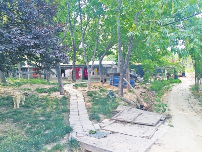 昨天上午,鄭州西三環(huán)與電廠南路交叉口附近路西的一處綠化帶,一條小路通向綠化帶深處,兩排約10米長、3米寬的磚混結構平房掩映在綠樹下,一條磚鋪小路一直通向房屋門前。記者走到平房跟前發(fā)現(xiàn),房子四周2米寬的范圍,地面均已被水泥硬化。