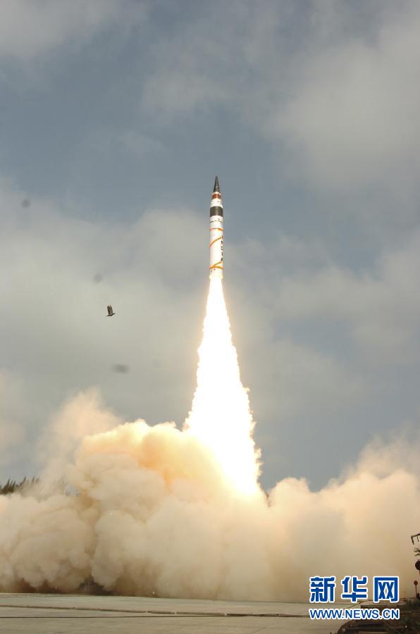 印度當(dāng)?shù)貢r(shí)間19日8時(shí)7分(北京時(shí)間10時(shí)37分)從東部惠勒島試射了自主研制的、射程超過(guò)5000公里并可攜帶多枚核彈頭的烈火-5型中程彈道導(dǎo)彈。