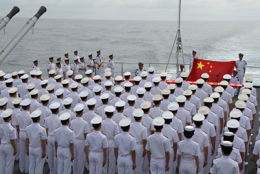 蔚藍(lán)的天空、湛藍(lán)的大海,當(dāng)金色的陽(yáng)光鋪滿(mǎn)艦體,軍樂(lè)隊(duì)奏響雄壯的中華人民共和國(guó)國(guó)歌,在后甲板整齊列隊(duì)的“鄭和”艦官兵代表舉起右手,面向國(guó)旗莊嚴(yán)宣誓,表達(dá)他們對(duì)人民海軍的忠誠(chéng)和熱愛(ài)。